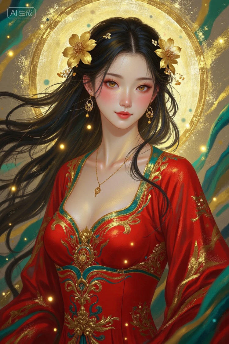 举例自然词汇如这是一幅描绘中国北京天坛的数字艺术作品,具有超现实、抽象的风格。传统的,多层的,红蓝相间的宝塔被旋转的,金色和紫色的云包围,给人一种梦幻般的,空灵的效果。前景是通往寺庙的白色石头楼梯,生成想要的中式山水装饰画,