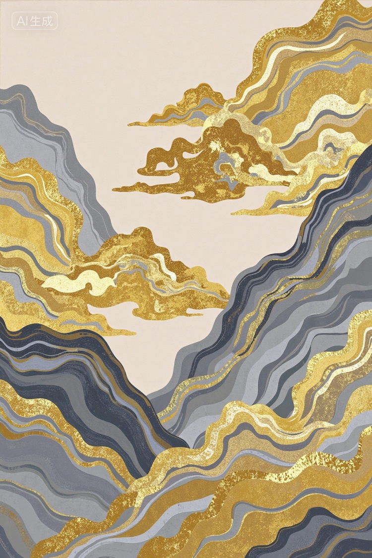 权重0.8~0.1之间画面会比较贴合鎏金山水装饰画风格