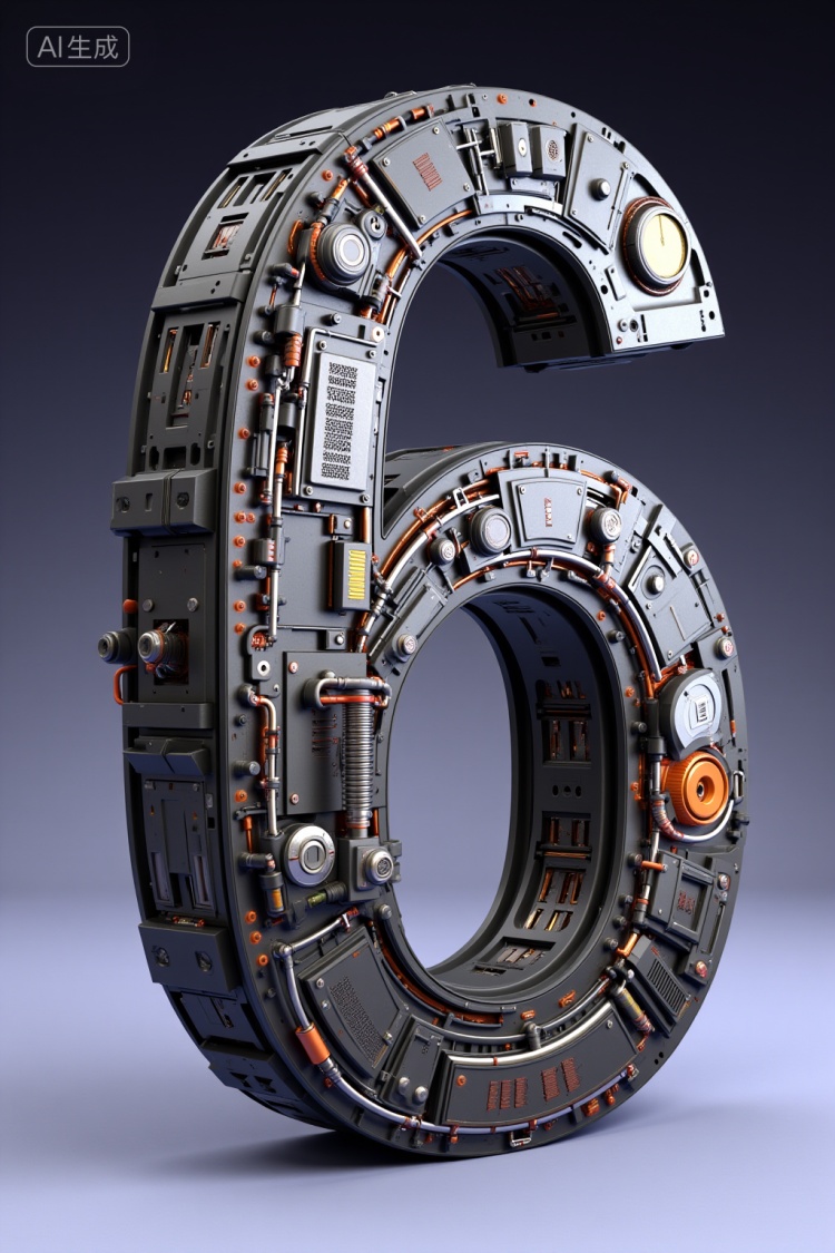 举例自然词汇如概念机械艺术家,最佳质量,杰作,纹理,8k,数字6,机械和电子元件,