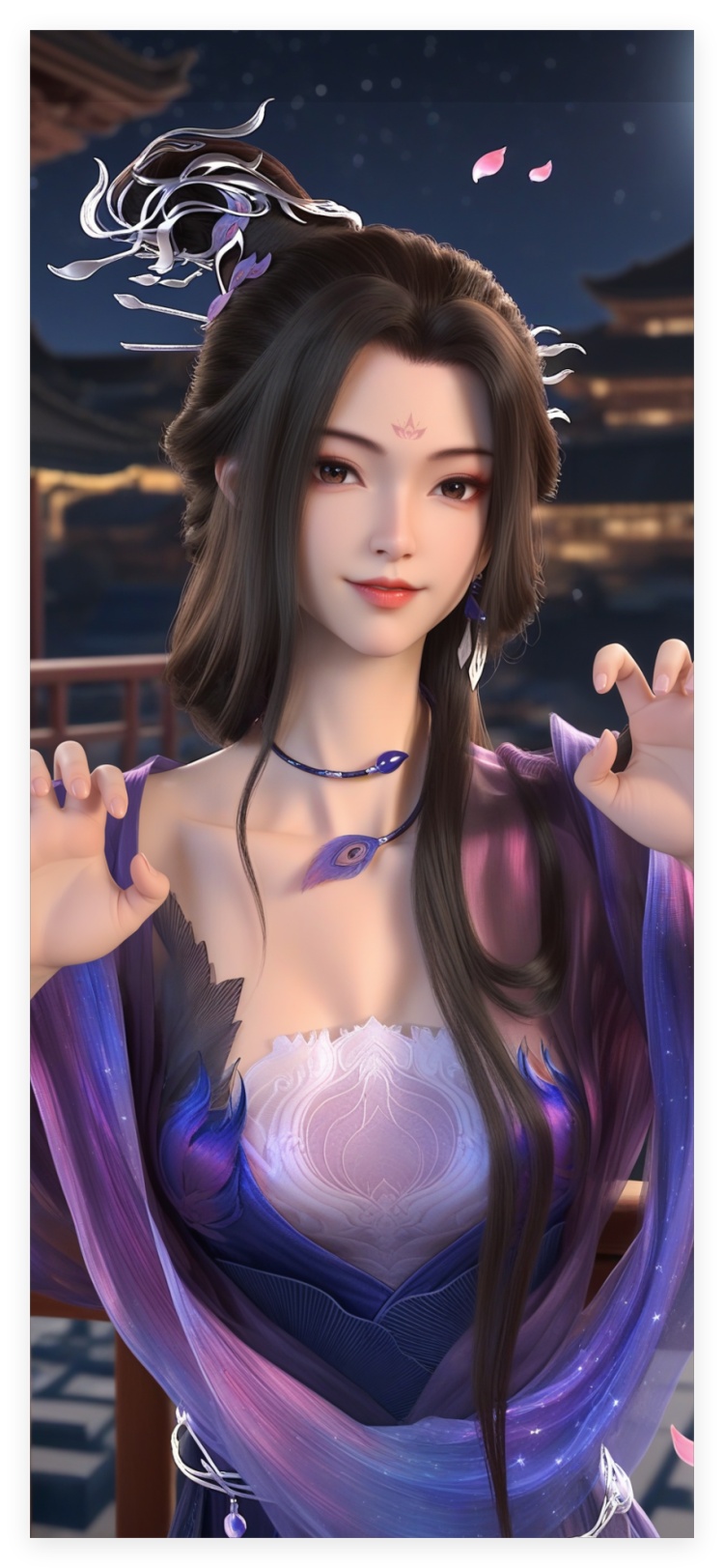 (score_9), collarbone,brown eyes,1girl,solo,long hair,black hair,hair ornament,forehead mark,choker,(updo),sheer ruffled sleeves,flowing long gown,layered dress, BREAK (white_skin),(sweaty skin),(Ivory_skin),light_skin,(very sweaty),-----注释:这是让她看起来很润---- simple background,white background,masterpiece,best quality,absurdres,highres, ------------权重建议0.8-0.9,多试试--------- 触发从:fqy和indoors带有背景污染,如果想要动画背景加加上,不需要就去掉;
