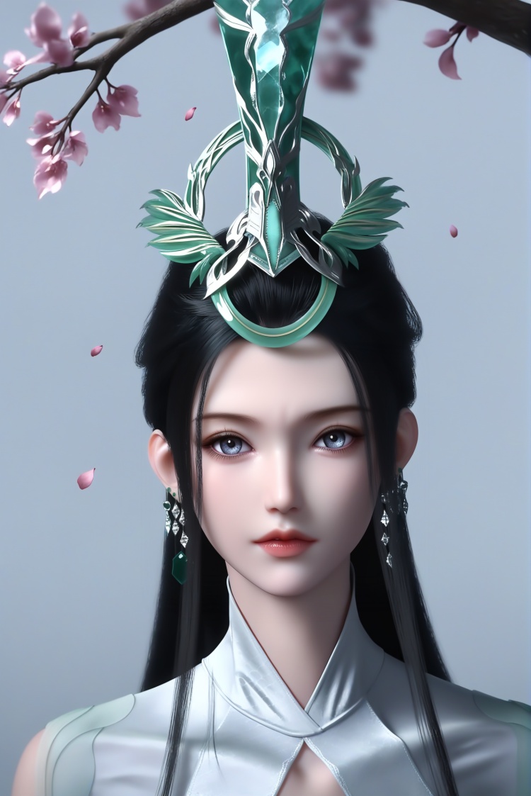 collarbone,(glamor:1.1),narrow waist,<lora:陆嫁嫁pony-v2:0.82>,long hair,black hair,jade headdress,crystal earrings,headdress,light blush,light smile,------注释:人物属性----