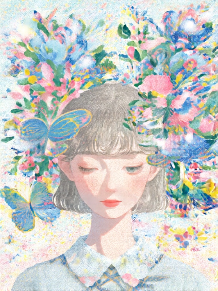 1. AI图像生成模型可快速创作点彩肌理装饰画,为家居装饰、文创周边提供丰富的视觉素材。