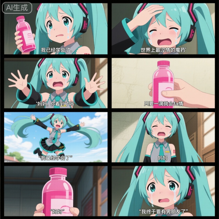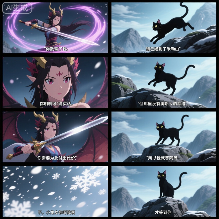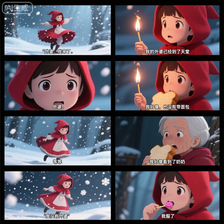 这里需要描述8个画面的内容和字幕,有时你可能不需要字幕,删掉字幕就可以了,你可以介绍蜜雪冰城的辛普森战争之类的。