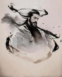 <lora:zyd232_InkStyle_v1_0:1.2> zydink, monochrome, ink sketch, 1boy, asian (middle age man), (long beard, facial hair), fighting stance, looking at viewer, long hair, floating hair, hanfu, chinese clothes, long sleeves, (abstract ink splash:1.2), white background