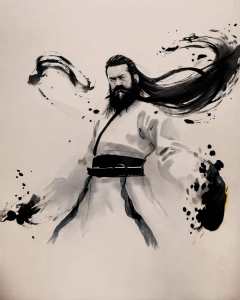 <lora:zyd232_InkStyle_v1_0:1.2> zydink, monochrome, ink sketch, 1boy, asian (middle age man), (long beard, facial hair), fighting stance, looking at viewer, long hair, floating hair, hanfu, chinese clothes, long sleeves, (abstract ink splash:1.2), white background