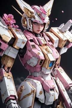 A girl holding a pink fox,color grading,(glowing haze)++ (soft glow)+ digital art render,pink,gold,<lora:SNM:0.6>SNM,flower,<lora:gundamChilloutMix_v1:0.4>,Mechs,Gundam,, anatomically correct, UHD, ccurate, textured skin, high details, best quality, super detail, award winning, high quality, retina, 16k