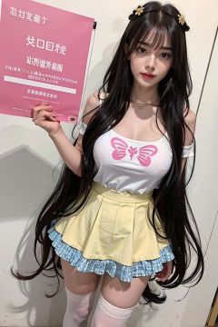 masterpiece,best quality,<lora:shuimutou-000014:0.5>,shuimutou,long hair,Glossy hair, shiny hair,Swaying hair, fluttering hair,Hair flaps,(Asymmetrical bangs:1.1), (full body shot shot),1girl,(large breasts:1.2), idol style, cute clothing, bright colors, playful patterns, ruffled skirts, knee-high socks, kawaii accessories, youthful designs
