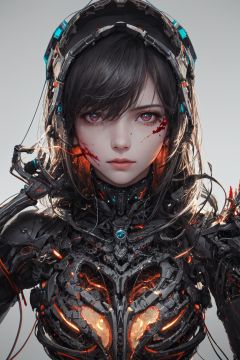 1mechanical girl,((ultra realistic details)), portrait, detailed face,global illumination, shadows, octane render, 8k, ultra sharp,metal,intricate, ornaments detailed, cold colors, egypician detail, highly intricate details, realistic light, trending on cgsociety, glowing eyes, facing camera, neon details, machanical limbs,blood vessels connected to tubes,mechanical cervial attaching to neck,wires and cables connecting to head,blood,killing machine