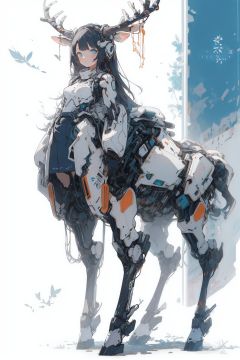 best quality,masterpiece,illustration,1girl,solo,full body,Mecha,Blank background,Deer ear,antler,Blue tone,(Solid color:1.4),