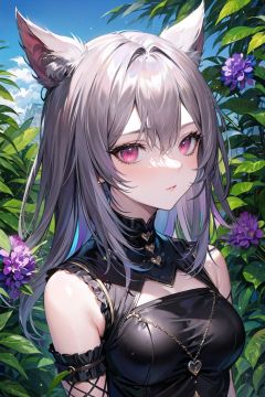 1girl,solo,outdoors,portrait, cat girl,facepalm,pink eyes,colorized,wolfsbane