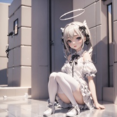 masterpiece,best quality,loli,White Pantyhose, fox girl,blush,halo,two wings,petety,1girl, white hair,wet through,1 girl((3D modeling)), ((photos)), ((real world))