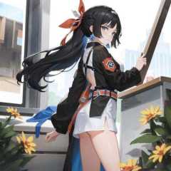 masterpiece, best quality, 1girl,(solo:1.3),standing,official art, simple background, close-up,looking at viewer, Fuzi,long hair,black hair,blue eyes,huge breasts,