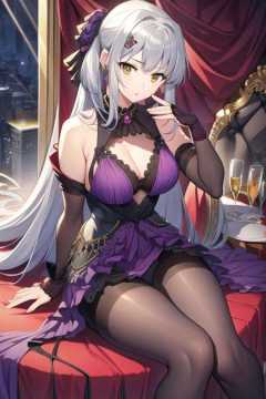 masterpiece,best quality,1girl,(solo:1.2),<lora:Yui(Majsoul)-000008:0.8>,Majsoul,YuiYagi,Yui_waltz,long hair,sliver hair,yellow eyes,sitting,full body,purple dress,black lace glove,black pantyhose,jewelry,