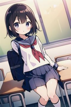 (loli:1.2),serafuku,classroom,pleated skirt,school bag,