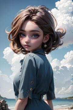 masterpiece, best quality, realistic, 8k, official art, cinematic light, ultra high res, 1girl, blue dress, sky, cloud, outdoors