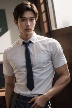 handsome male,big muscle,school uniform,dutch angle,dramatic lighting,