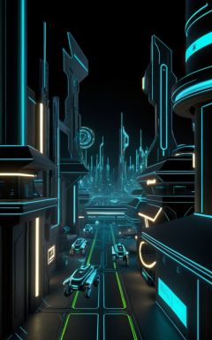 realistic, science_fiction, A futuristic world of robots and mechs navigating neon cities.