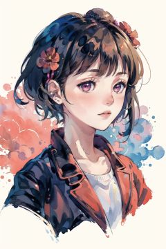 (masterpiece:1.0), (highest quality:1.12), a girl, anime illustration, cover art, (coral:1.1), portrait , magenta background, coral splash, sy3, SMM,watercolor style