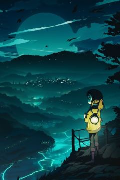 1 girl, look at viewer, (anime:1.2), nature, landscape, night light, horror style
