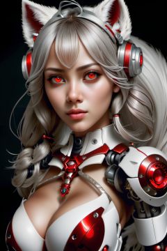 (masterpiece:1.1), (highest quality:1.1), (HDR:1.0), ((best quality, Amazing)), 1girl, beautiful detailed eyes, an extremely beautiful girl, finely detailed, depth of field, (full body:0.9), dark skin, white streaked hair, red eyes, cold faces, ahoge, wolf ear fluff, white_hair, red_eyes, facing viewer, (dark theme)