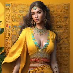 Real full picture of Most beautiful attractive model wearing yellow full covered Chemise having colorful hieroglyphic detailed writings, high resolution, 8k,, WLOP , mockup, ultra hd, realistic, vivid colors, highly detailed, UHD drawing, pen and ink, perfect composition, beautiful detailed intricate insanely detailed octane render trending on artstation, 8k artistic photography, photorealistic concept art, soft natural volumetric cinematic perfect light, ultra realistic,