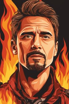 Vector art style, 1man, high_resolution, high detail, on fire