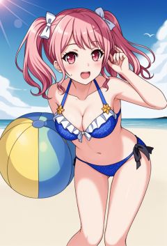 beach,twintails,masterpiece, best quality, bikini,cleavage