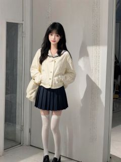 (((masterpiece))), (((best quality))), ((ultra-detailed)), (illustration), (detailed light),((an extremely delicate and beautiful)),(beautiful detailed eyes),1girl, short hair,black hair,light smile, hair clip, hairclip,serafuku, pleated skirt,white thighhighs,legs,loafers,black footwear,standing,full body,road,city,day,looking_at_viewer,<lora:gxwb:0.4>, <lora:ifg:0.8>