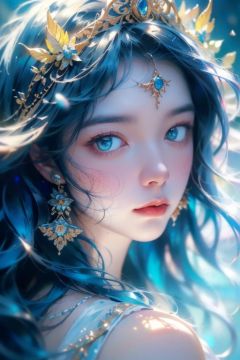 masterpiece,best quality,ultra-detailed,hyperdetailed painting,dynamic pose,1girl swimming in deep water,(see-through colorful cloth:1),(portrait:1.1),pretty face,(beautiful detailed water),((extremely delicate and beautiful girls)),dynamic angle,(beautiful detailed eyes),(detailed light),glowing eyes,pointy ears,blue hair,ruby right eye,enchanting eyes,ruby left eye,(sunlight),(detailed glow),(fractal art:1.1),( chiaroscuro,Fujicolor, UHD, super detail ,raw,85mm,f/1.2,FujifilmXT4,),tullece,<lora:Lemon Summer:0.7>,<lora:繁星若梦_v1.0:0.7>,<lora:HuanCai--幻彩(辅助微调模型)_v1.0:0.7>,