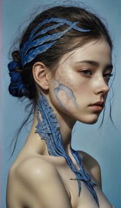 1girl in, surrealism, Verism, Anatomically correct, Textured skin, masuter piece, high details, awardwinning, hight resolution, 8K,Unevenness of the skin,20yr old, blue backgroud