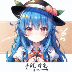 masterpiece, best quality, official art, 1girl, brush \(medium\), BREAK White (square:1.4) (borders:0.8), (expressive lettering, lettering art, expressive styles, unique design:1.4), (calligraphy, creative typography:1.1), , sigma 14mm, vanishing point, face-to-face, drop shadow, carousel, , hinanawi tenshi, blushing, frown, red eyes, glowing eyes, tsundere, hat, peach, blue hair, long hair, <lora:EMS-13074-EMS:1.000000>