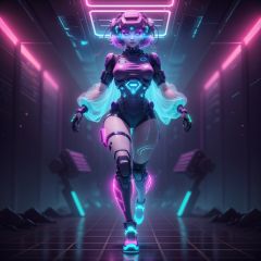 <lora:RetrowaveTech-20:0.8>,retrowavetech ,scifi, virtual, vaporwave,wirefrme ,see-through, transparent, hologram, 1girl, tattoos, glowing tattoos, glowing eyes, colored glowing hair , full body,
