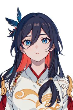 (masterpiece:1.3),(the best quality:1.2),(super fine illustrations:1.2),(Masterpiece),high quality,high detail,(white background:1.2),looking at viewer,(SOLO:1.4),outline,simple background,<lora:符华-仙人:0.8>, coat,fu hua,chinese clothes,hakama skirt,hanfu,dress,hair between eyes,multicolored hair,hair ornament,wide sleeves,very long hair,low-tied long hair,long hair,bird,blue eyes,