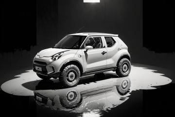 Drawing of micro vehicle, sketch artstyle, grayscale, monochrome