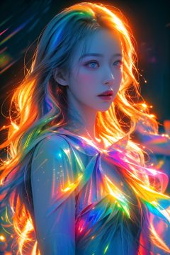 upper body,front view,<lora:neno_yuliuli_v1:0.5>,masterpiece,realistic,1girl,ultra detailed,8k,holographic,expressive,dream like shot,cinematic,dynamic pose,rainbowish,sunset,