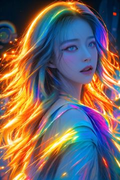 upper body,from side,<lora:neno_yuliuli_v1:0.6>,masterpiece,realistic,1girl,ultra detailed,8k,holographic,expressive,dream like shot,cinematic,dynamic pose,rainbowish,sunset,