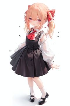 1girl, rumia, blonde hair, solo, white background, red eyes, red footwear, simple background, ascot, short hair, ribbon, open mouth, hair ribbon, smile, long sleeves, shirt, looking at viewer, red ascot, white socks, white shirt, red ribbon, shoes, socks, frills, bangs, outstretched arms, hair between eyes, skirt, :d, dress, vest, mary janes, black dress, black skirt, collared shirt, black vest, blush