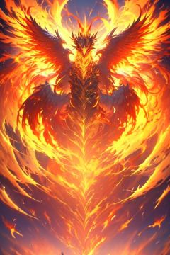 (best quality,4k,8k,highres,masterpiece:1.2),studio lighting,ultra-fine painting,extreme detailed,divine beast,phoenix,fire,flame,dynamic pose,golden glowing,golden glowing eyes,(glowing body:1.3),glowing wings,yellow eyes,no humans,<lora:DivineBeast:1>,