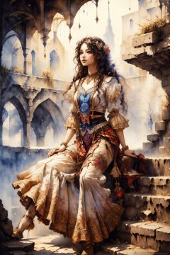 (masterpiece, top quality, best quality, official art, beautiful and aesthetic:1.2), (1girl), extreme detailed,(fractal art:1.3),colorful,highest detailed,Dreamy Atmosphere,Bright color,Complete clothes., watercolor