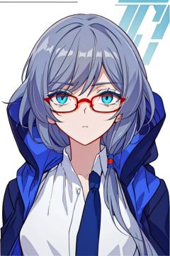 (masterpiece:1.3),(the best quality:1.2),(super fine illustrations:1.2),(Masterpiece),high quality,high detail,(white background:1.2),looking at viewer,(SOLO:1.4),outline,simple background,<lora:符华-逃亡:0.8>, long hair,red-framed eyewear,blue eyes,bangs,hair ornament,long sleeves,blue jacket,hair between eyes,fu hua,thighhighs,messy hair,hooded jacket,hood down,side ponytail,hood,collarbone,white shirt,coat,barefoot,puffy sleeves,low ponytail,grey hair,