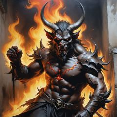 painting of a devil surrounded by flames on the wall,  graffiti inspired by