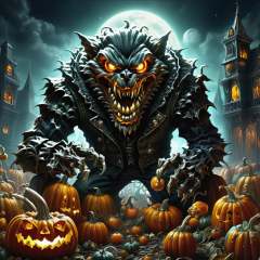 ((realistic,digital art)), (hyper detailed),h4l0w3n5l0w5tyl3DonML1gh7 Werewolf Hunter, Cursed, Popcorn Balls, Sinister Illumination, Visiting Haunted Locations,, <lora:h4l0w3n5l0w5tyl3DonML1gh7-v1.1-000008:1>