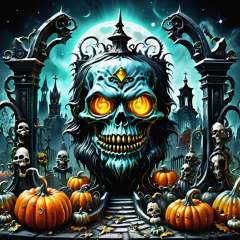 ((realistic,digital art)), (hyper detailed),h4l0w3n5l0w5tyl3DonML1gh7 Ghoulish Graveyard, Witchy, Shrunken Heads, Ouija Board, Spellbound Chandeliers, Gothic Horror, <lora:h4l0w3n5l0w5tyl3DonML1gh7-v1.1-000008:1>