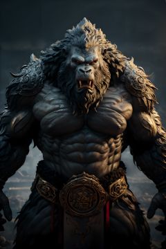(single focus:1.3),(masterpiece:1.3),absurdres,hyperdetail,best picture quality,a huge gorilla stands,solosis,chinese mythology,(exquisite details:1.3),(fine hair:1.3),(a furry texture:1.3),animal,(fangs:1.3),armor,open your mouth,(((game_cg))),(((masterpiece))),(((quality))),(((ultra detailed))),(water theme:1.2),chinese mythology,(tension lens:1.3),detail background,buddha statue,<lora:tongbiyuanhou-000007:0.3>,tongbiyuanhou,flawless and flawless,fine hair,perfect lighting,3d,3d rendering,high precision shadows,realistic hair,realistic light and shadow,(real muscle texture:1.3),(realistic texture:1.2),<lora:LowRA:0.7>,