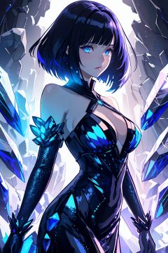 cinematic, fashion photo of a beautiful girl in the style of neomorphism, the transformation of minerals into polymorphs, glowing crystals, hyper detailed, photorealistic, detailed glow, ambient occlusion, ambient light