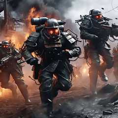 <lora:DieselPunkAI:.8> Multiple DieselPunkAI mechanized soldiers , fighting,  warfare, extreme, action, destruction, cinematic, hyperrealistic, masterpiece, detailed