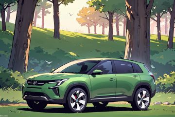 A futuristic autonomous vehicle is parked in a quiet forest, reflecting the design aesthetics of the Red Dot Design Award. The car has a fashionable design, clear lines, and adopts advanced energy-saving systems. Surrounded by tall and lush green trees, it emphasizes the perfect integration of nature and machinery. The setting sun peeks through the dense leaves, casting long shadows that highlight the metallic luster of the car. The picture is a bird's-eye view composition.