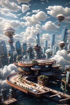 masterpiece,best quality,c4dchangjing\(c4d\),No people,landscape,sky,architecture,clouds,city,skyscraper,cityscape,outdoors,sky,blue sky,skyline,science fiction,lens halo,English words,sunlight,Ferris wheel,reflection,sun,tower,airplane,<lora:c4dchangjing-000010:0.55>,