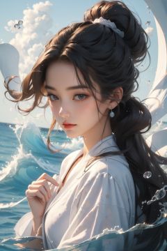 masterpiece,best quality,ultra-detailed,1girl,water,solo,waves,white clothes,<lora:水元素:0.6>,upper body,