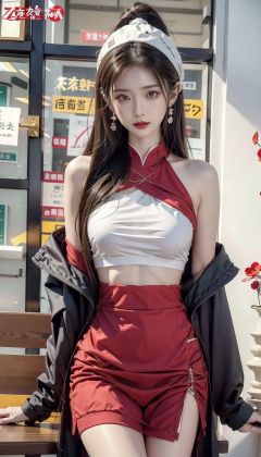 高品质,杰作,1girl,(透光白色警服:1.4),露脐,(透光短裤:1.3),露大腿,,(超模姿势),街头,朋克